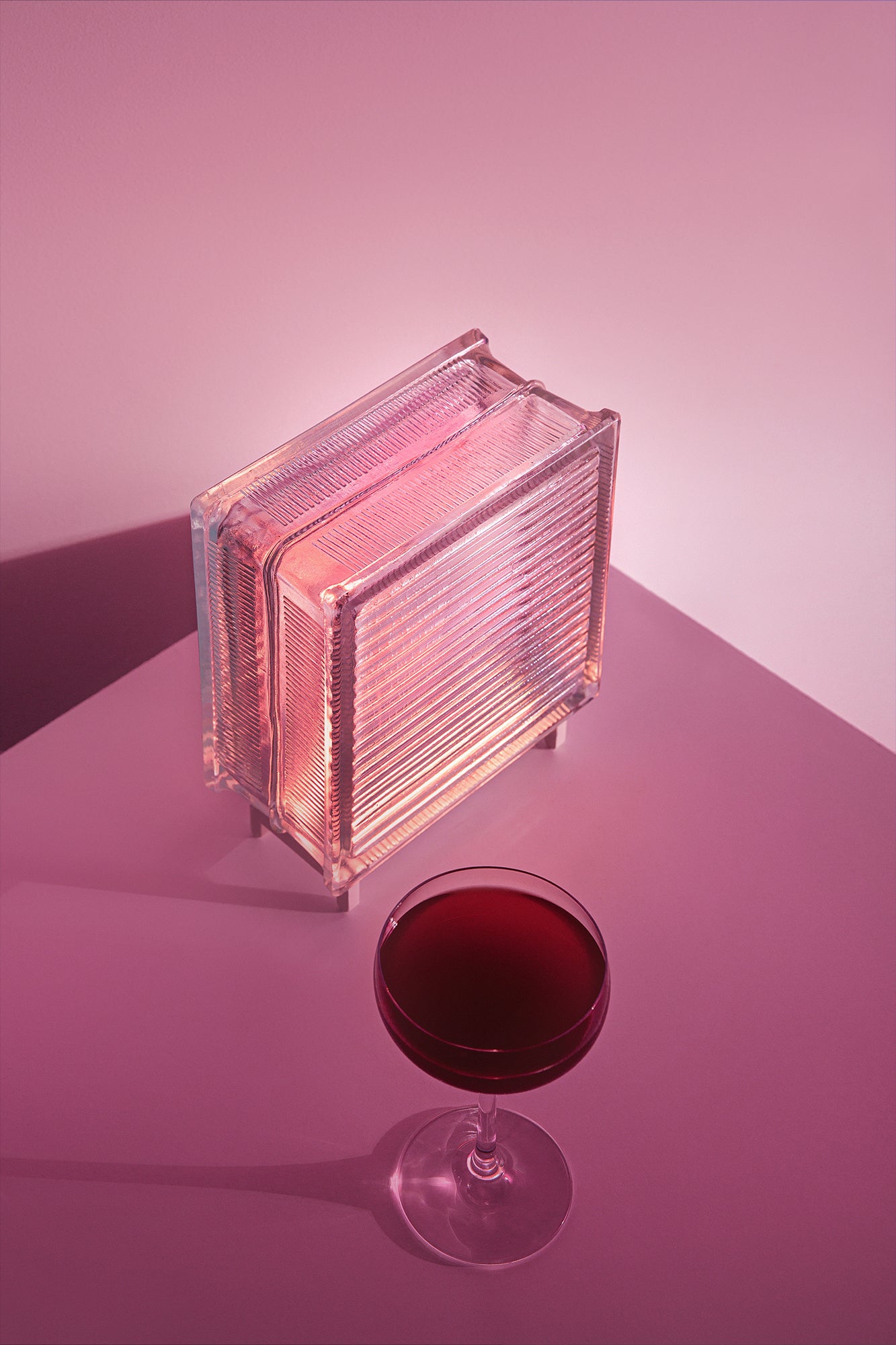 Modern line's dimmable table lamps are complete with new glass blocks inspired by modernist architecture. They are characterised by their pure, clear glass, which makes them a perfect match for the coloured light filters supplied with the luminaire.